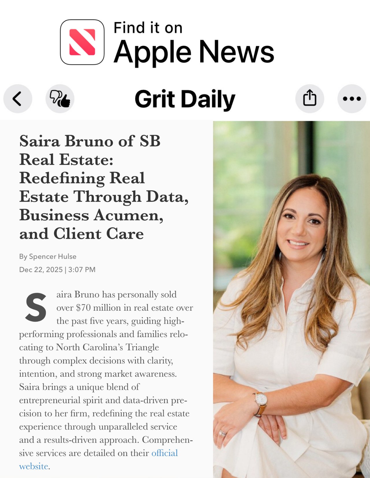 Saira Bruno Featured on Apple News | SB Real Estate
